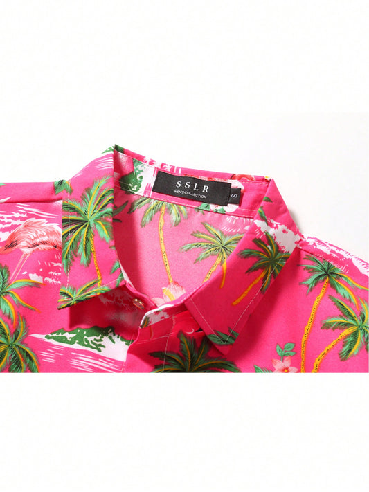 Mens Hawaiian Shirt Short Sleeve Flamingo Shirt Casual Button Down Shirts Summer Beach Shirt 314