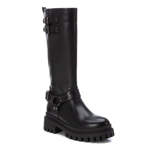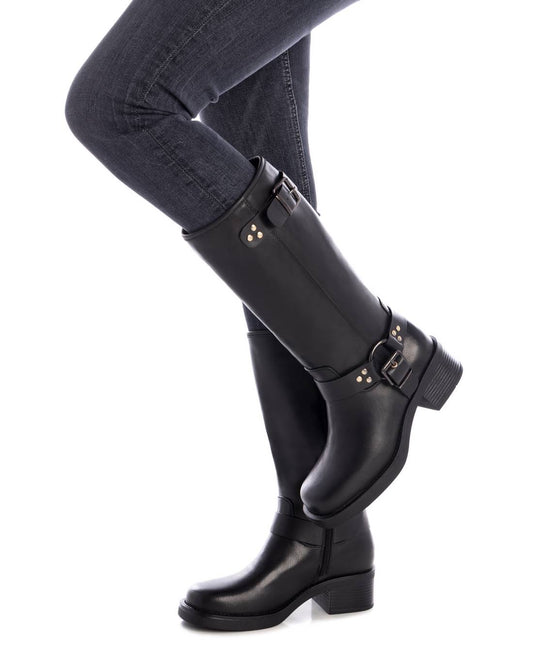 Women's Black Premium Leather Boots With Embossed Backside Nat By Bala Di Gala