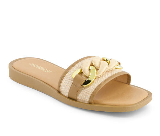 Andrea Women's Flat Sandals With Golden and Beige Charm on Textile upper 69425