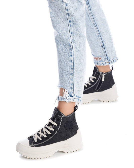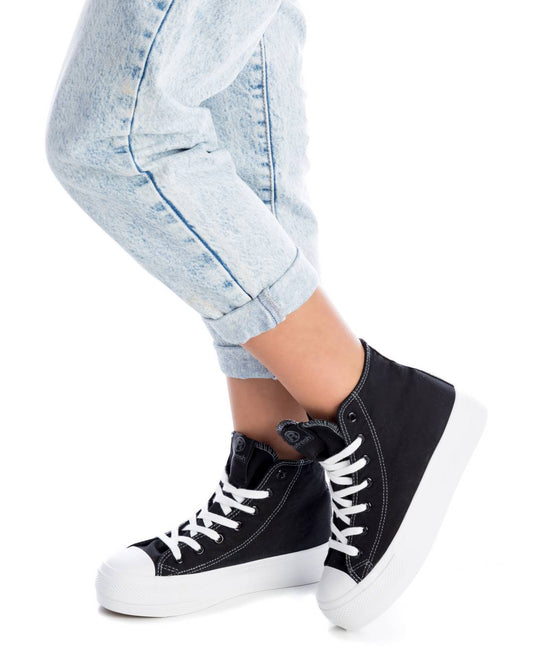 Women's Canvas High-Top Sneakers By XTI_170499_Black