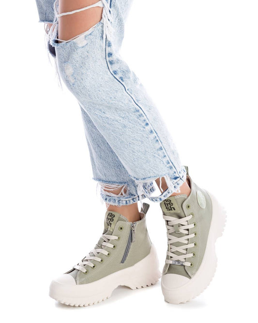 Women's Canvas Platform High-Top Sneakers By XTI_170803_Open Green