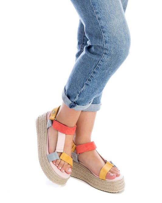 Women's Suede Strappy Sandals With Jute Platform By XTI_170849_Light Pink