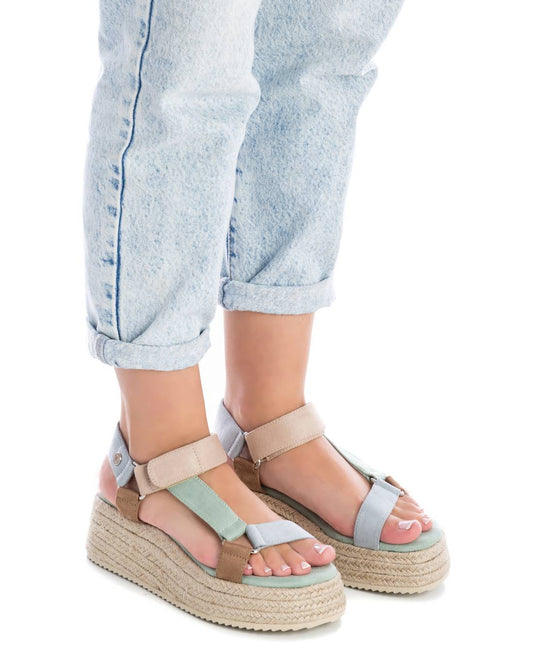 Women's Suede Strappy Sandals With Jute Platform By XTI_170849_Aqua