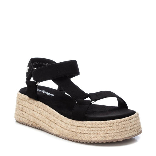 Women's Suede Strappy Sandals With Jute Platform By XTI_170877_Black