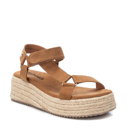 Women's Suede Strappy Sandals With Jute Platform By XTI_170877_Medium Brown