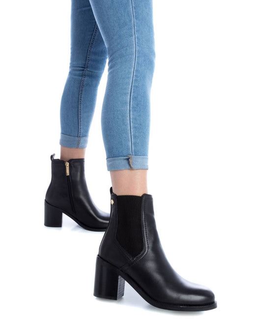 Women's Leather Casual Booties Carmela By XTI 160986 Black