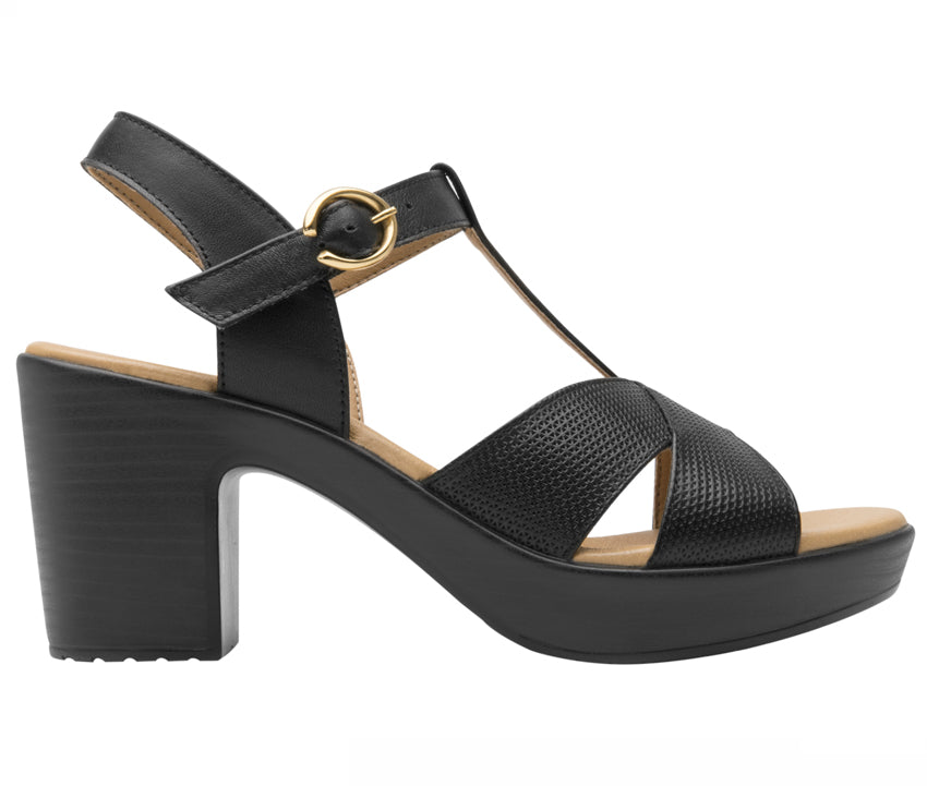 Women´s Leather Heel Ankle Strap Sandals 102917 Black